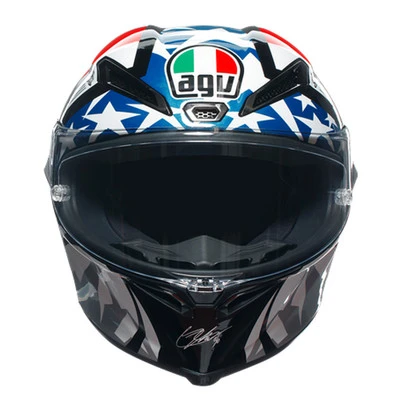 The AGV Pista GP RR Helmet is an exact replica of helmets worn by world championship racers. It meets stringent FIM Racing Homologation standards and provides the highest level of protection, even against glancing impacts that can cause rotational motion. Carbon fiber molded into an innovative shape lets the helmet move through air effortlessly. AGV’s Integrated Ventilation System (IVS) uses 5 large front metal air vents and 2 rear extractors to let air pass through the helmet freely. Four shell sizes used across 7 different helmet sizes get a closer fitting shell compared to other helmets. The helmet was designed for an aggressive tucked racing position with a face shield allowing for a maximum vertical view and wide horizontal view. AGV’s patented Visor Lock System (VLS) decreases the chance that the face shield comes opens in a crash. With a fit developed for MotoGP racers, the Pista GP RR’s lining allows for an optimized fit and positioning on your head. Everything about the AGV Pista GP RR Helmet is designed for high speed track performance.