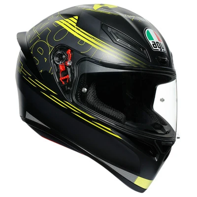 K1 is the brand new AGV sport helmet for everyday riding challenges. Born from the AGV racing technology, ready for every road experience. The aerodynamic shape, racing-developed front air vents and wind-tunnel-tested spoiler maximize performances and give stability at higher speed. The anti-scratch visor with Pinlock® anti fog allows a wider vertical and lateral field of vision. Comfort is no-compromise with Dry-Comfort soft and removable interiors. Competition is a matter of facts.