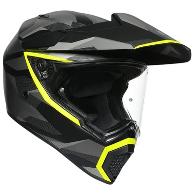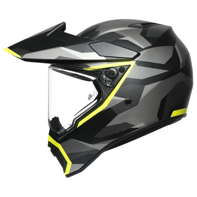 The AGV AX-9 Helmet is an all-new design over the popular AX-8 DS EVO Helmet. It starts with the lightweight carbon, aramid and fiberglass shell and a redesigned peak for optimal aerodynamics. The peak itself is adjustable to reduce the sail effect at high speeds. Superior ventilation is achieved with 5 total vents: an adjustable chin-vent, two brow inlets and 2 extractors. The design of this helmet also allows for four different configurations — peak / visor, no peak / visor, peak / goggles, no peak / goggles — meaning it can handle practically any riding scenario.