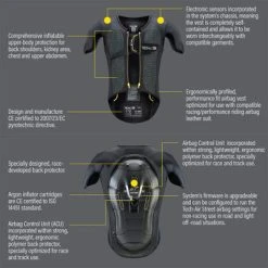 - Airbag Control Unit incorporated within strong, lightweight, ergonomic polymer back protector, specially optimized for race and track use.