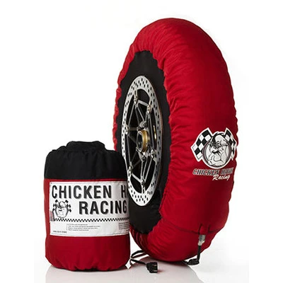 If you ride on the race track tire warmers are a must! Using warmers eliminates cold tire crashes and helps extend the life of those super sticky race tires. Chicken Hawk tire warmers are made in the USA and are used by more professional teams in the US than any other brand.