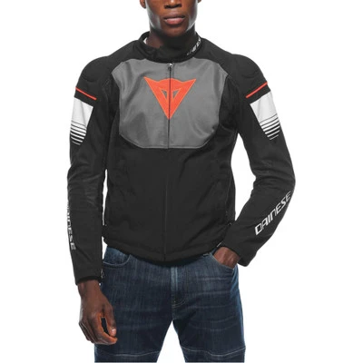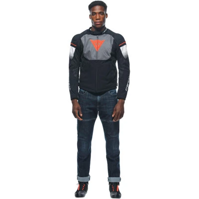 Its protection features consist of EN 1621.1-certified Pro-Armor removable soft protectors on the shoulders and elbows that work in synergy with the rigid polyurethane inserts on the shoulders and the rear pocket, which can hold a back protector. The Dainese Air Fast Textile motorcycle jacket guarantees proper ergonomics due to its Mugello stretch fabric inserts on the back, the adjustable Velcro waist, and jacket-to-pants connection system.