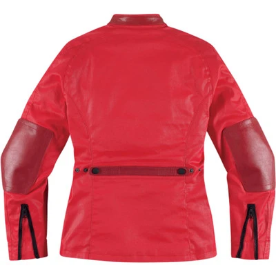 The Icon 1000 Women’s Akorp Jacket is a visually pleasing untion of military detailing and a vintage moto silhouette in a quality riding jacket. This jacket is constructed of a Highland-Coated canvas with Brazilian cowide overlays. Inside this quality riding jacket can be found a quilted satin liner and and a full suite of removable CE certified D3O protectors (i.e. back, shoulder, elbow). These protectors were designed and incorporate so as to provide quality protection without hindering fit or movement. The Women’s Akorp Jacket also features rear waisting belt adjustment to ensure a proper flattering fit, tactical YKK Zippers, and a magnetic flap closure.