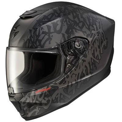 The EXO-R420 helmet continues to set a new standard for Scorpion EXO’s full face street helmets at a very competitive price point. An all new advanced LG polycarbonate shell is more aerodynamic and smaller resulting in an ultra lightweight SNELL-approved helmet. The aero tuned ventilation system uses a large top vent and mouth vents engineered to allow more airflow to the riders head while maintaining low noise levels. The EXO-R420 now features our new Elliptec II faceshield with a latching shield locking mechanism located in the lower center of the shield. This makes the faceshield more secure and provides a tighter seal against the gasket. The faceshield can easily be removed without tools, and the EverClear No-Fog coating helps keep your vision clear in cold and damp environmental conditions. The KwikWick II comfort liner is moisture wicking, anti-microbial, quick drying and can be easily removed and is machine washable.