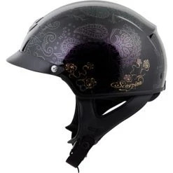 The Scorpion EXO-C110 Helmet is constructed of Scorpion’s Advanced LG Polycarbonate Shell which is designed to reduce weight and with the Dual Density EPS to disperse impact. This classic half helmet incorporates the Aero-Tuned Ventilation System which utilizes intake vents of the top of the helmet to draw cool air in while the exhaust vents move the hot air out. The EXO-C110 Helmet also features a SpeedView Drop-Down Sun Visor, KwikWick II Anti-Microbial Comfort Liner, and communications system speaker pockets.